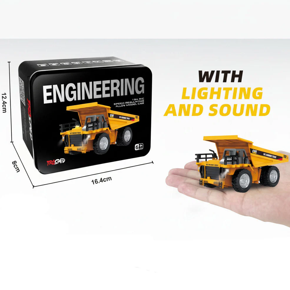 1:64 RC Dump Truck – App & Remote Control with Lights & Sounds